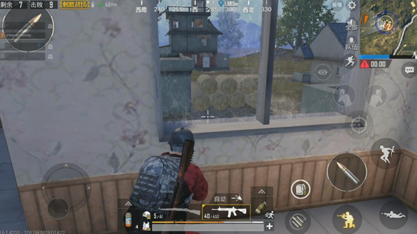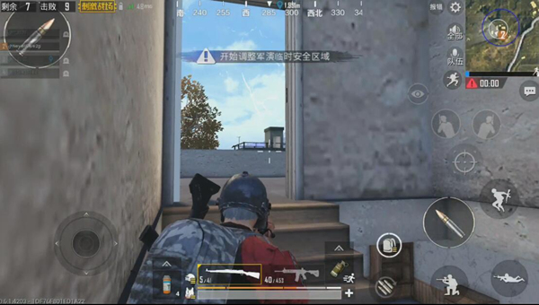 场景1中,处于楼顶的我们只需要蹲下或趴下,就可以直接规避几乎所有方向敌人的攻击。
